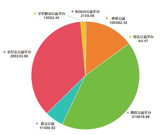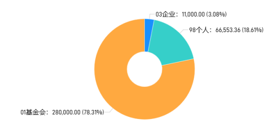 2025年1月互联网公众平台共募集737854.15 元(其中674,130.79 元由公募基金会代接收),具体占比如下: