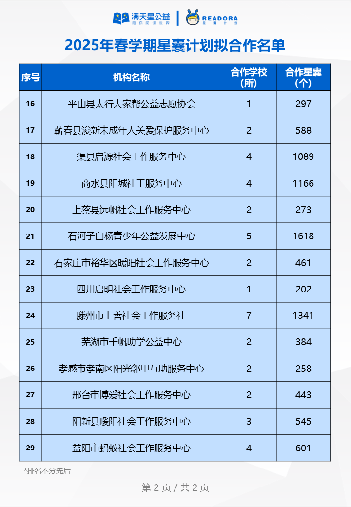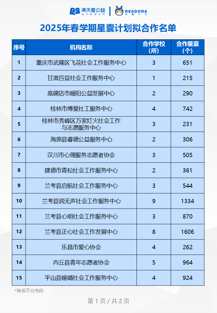 关于2025年春学期“星囊计划”项目合作机构招募结果的公示