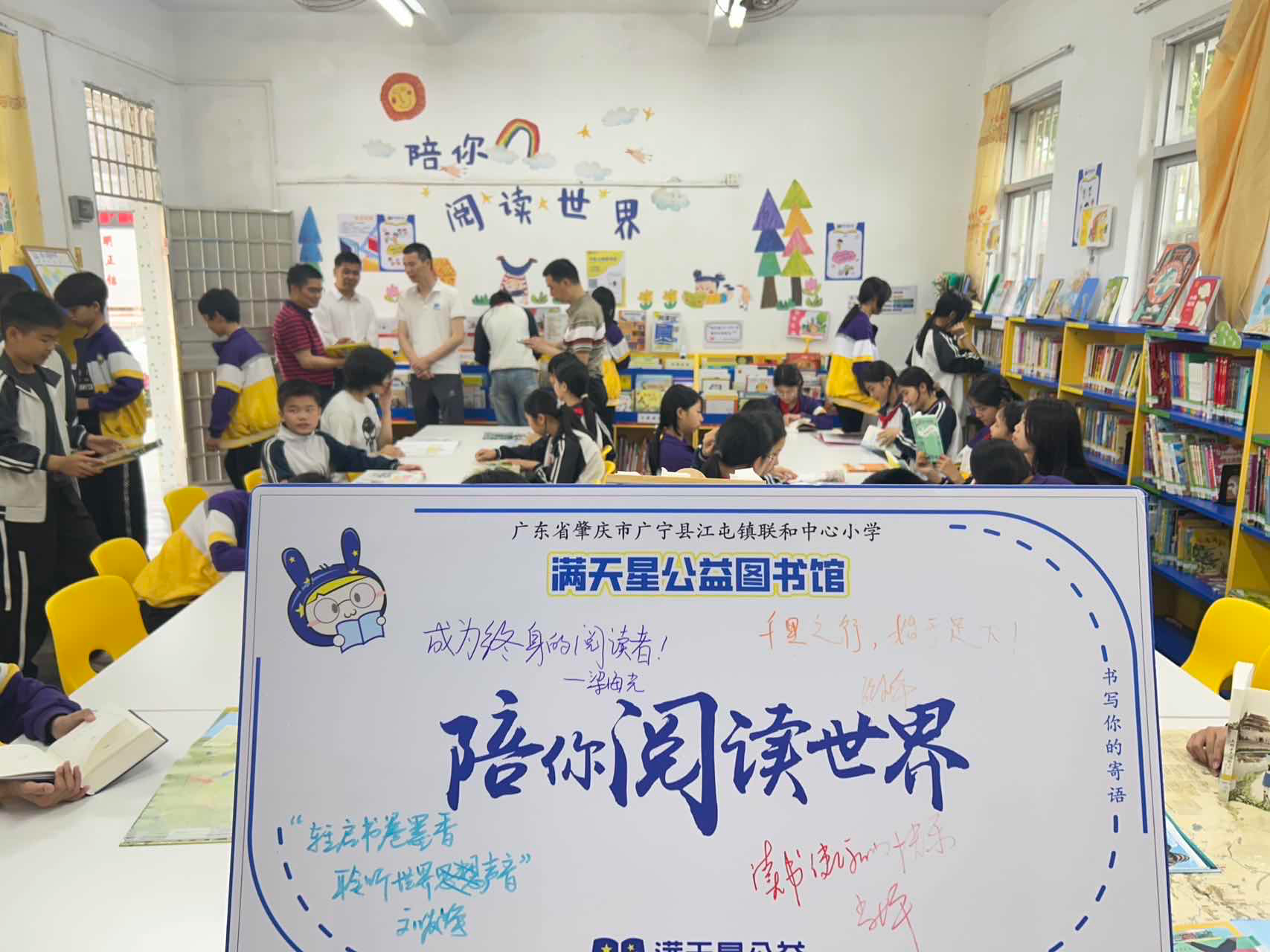 最后,由各方代表一同为江屯镇联和小学·满天星公益图书馆正式揭牌,留下对图书馆的寄语,正式宣告图书馆的开放使用自此开始。