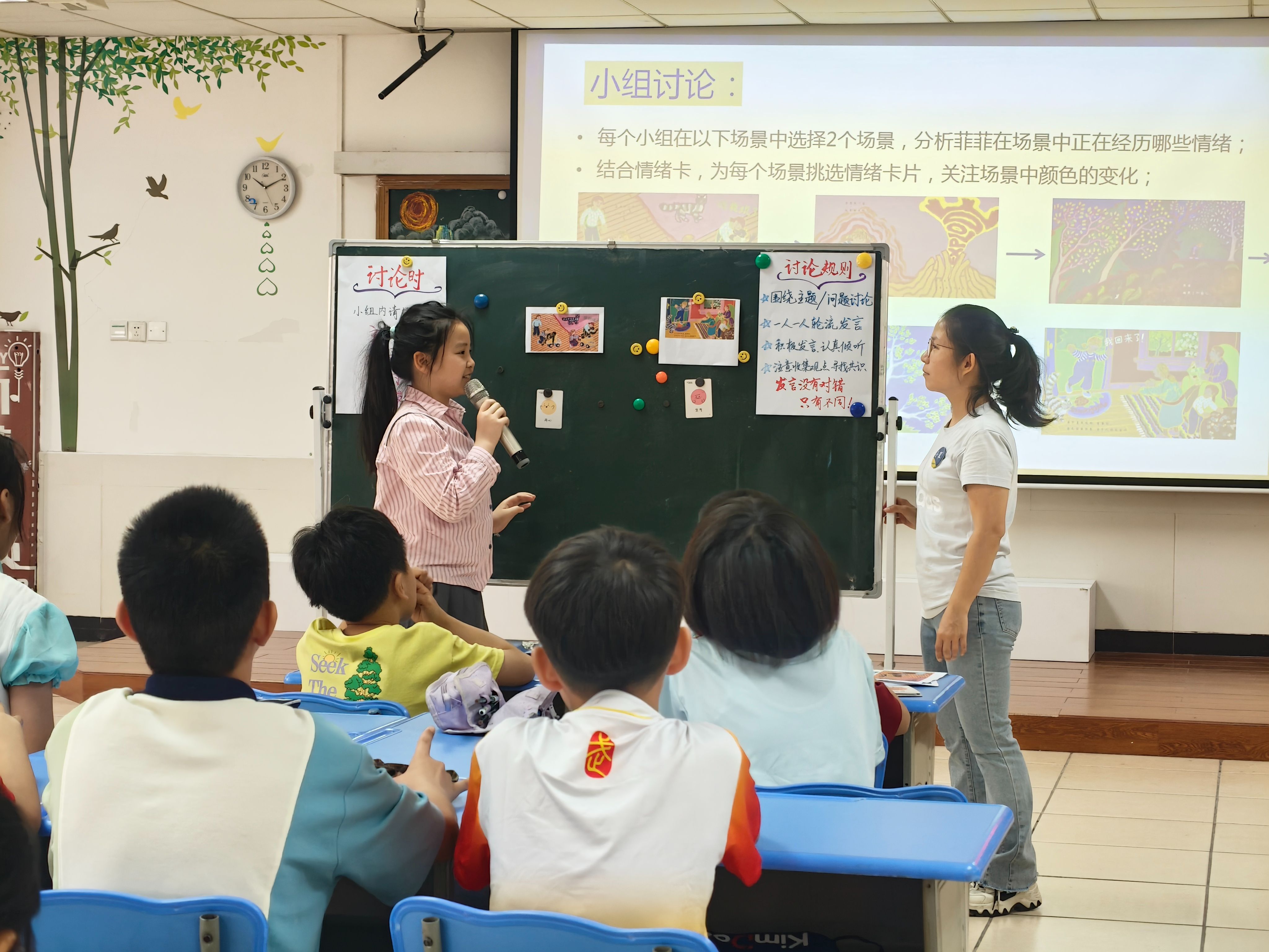 在捐赠仪式过后,童书乐捐的绘本讲师小笨老师,为四(4)班的学生们带来了一场别开生面的《菲菲生气了》绘本故事会,引导他们通过绘本讲述的以菲菲作为主角的故事,关注到以自己为主角的情绪认识上。