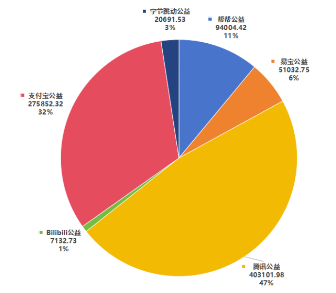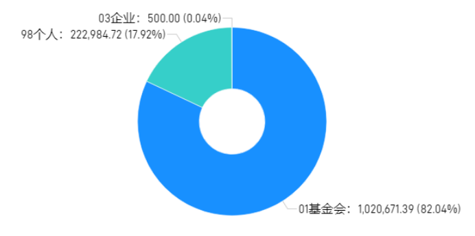 2025年5月互联网公众平台共募集851,815.73 元(其中629,261.01 元由公募基金会代接收),具体占比如下: