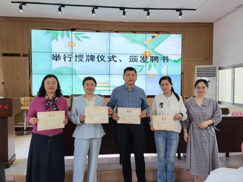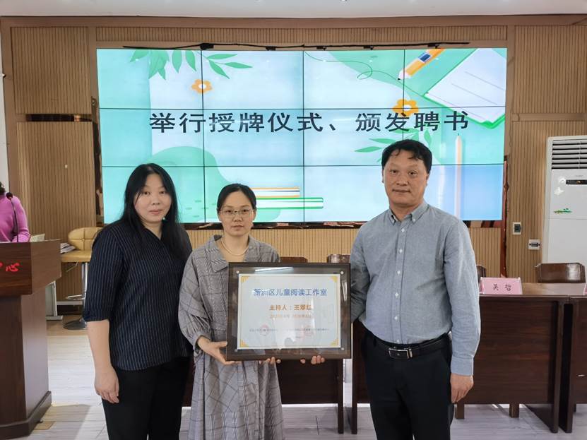 吴哲老师和石建韬主任共同为工作室举行了授牌仪式,正式宣布了工作室的启动运行;区教师培训中心党总支委员、工作室主持人王翠红分别为工作室顾问、导师和成员颁发了聘书,鼓励大家同心协力,发挥优势,在未来的工作中为新洲区儿童阅读推广工作积极贡献智慧和力量。