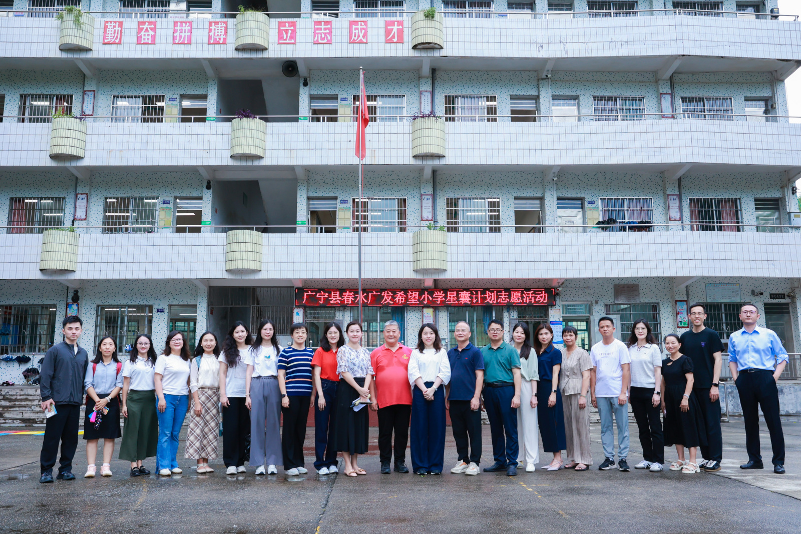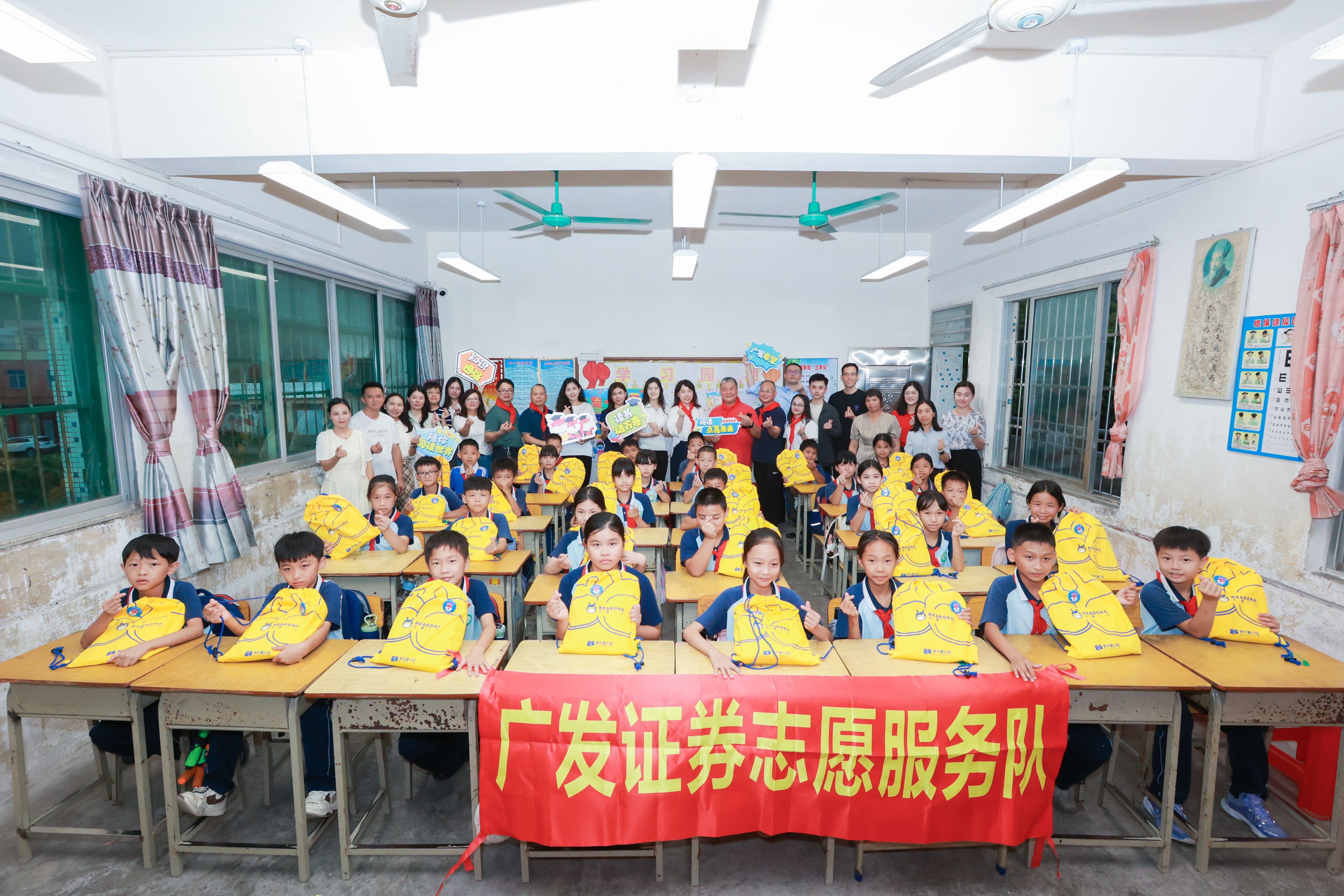2025年6月27日下午,派发活动走进春水广发希望小学。广宁县财政局党组成员、国资局副局长易沃强、广宁县教育局副局长罗雄威、广发证券党群工作部总监王岑岑、广发证券驻镇帮扶工作队李晓武以及广发证券志愿者和春水广发希望小学全体师生参加了本次活动。