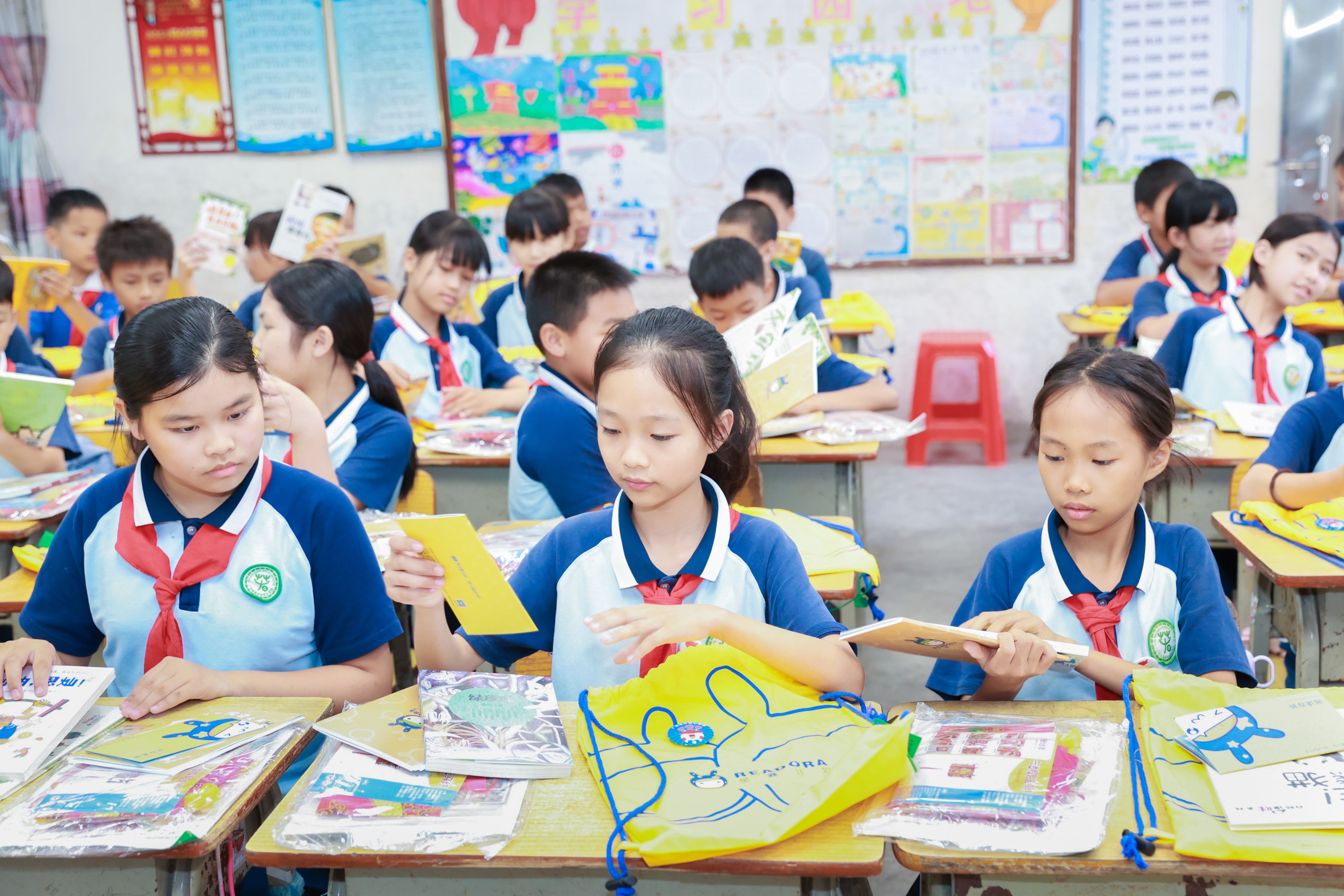 书籍是小朋友认识世界的另一扇窗户,受经济、地域所限,乡村学校的图书数量和质量低于城市学校,关注到乡村学校优质阅读资源相对匮乏的现状,广东省广发证券社会公益基金会联合满天星公益星囊计划项目,走进肇庆市广宁县,为广宁县排沙镇春水广发希望小学的178名学生送去精心设计的星囊阅读包,并与学生们开展了一场别开生面的阅读之旅。