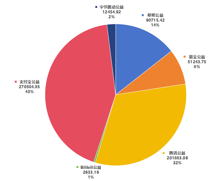 2025年7月互联网公众平台共募集 629,435.16 元(其中509,442.15 元由公募基金会代接收),具体占比如下: