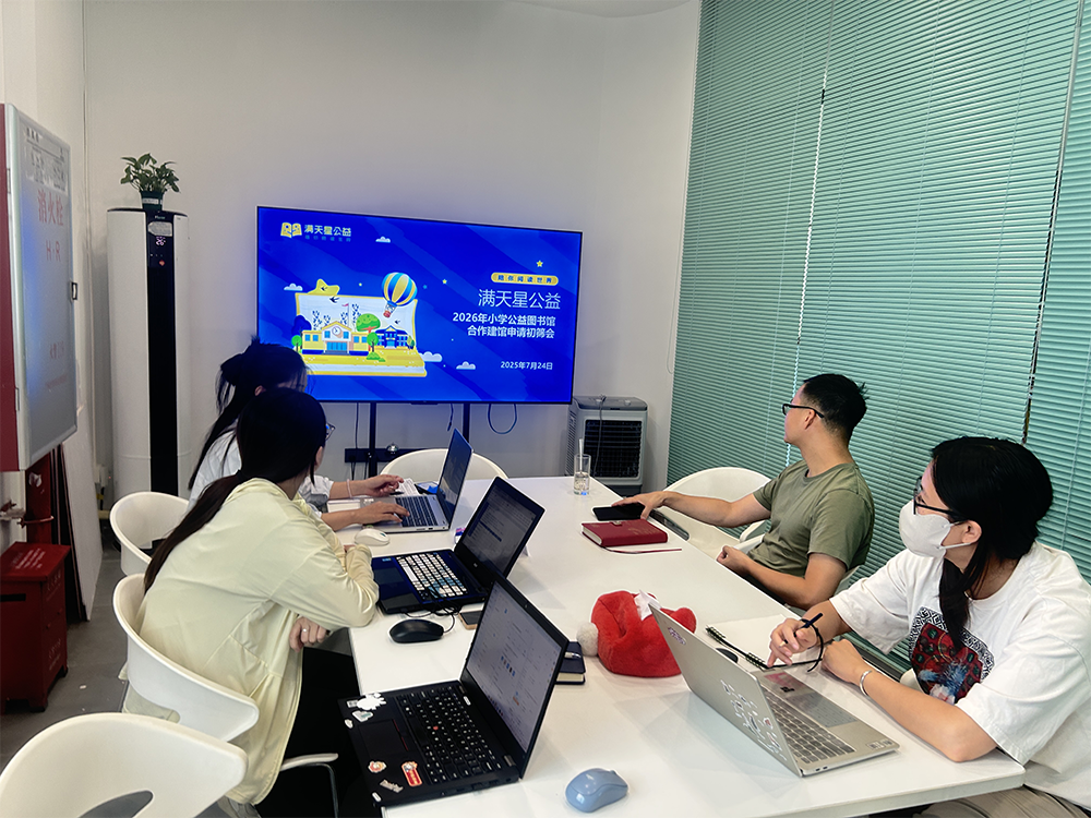 在新建馆方面,为促进县域阅读联盟的发展,持续推动当地学校形成良好的阅读氛围,满天星公益稳步推进2026年小学图书馆项目筹备工作。项目组根据学校提交的申请材料,逐一核实相关信息后,于7月24日召开2026年新建图书馆初筛评审会议,对来自5个县域的8所申请学校进行综合评估。经评审,项目组从场地条件、人员配置、学生规模、基础投入能力等维度进行严格筛选,最终确定3个县域的5所学校通过初审。下一步,项目组将开展实地考察,进一步评估学校的具体条件与合作可行性。
