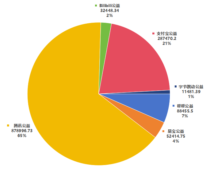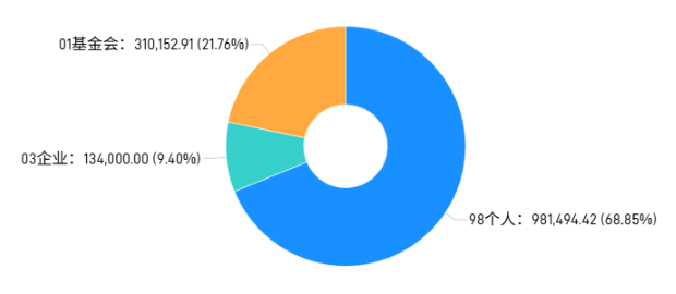 2025年9月互联网公众平台共募集1,351,266.91 元(其中523,202.49 元由公募基金会代接收),具体占比如下: